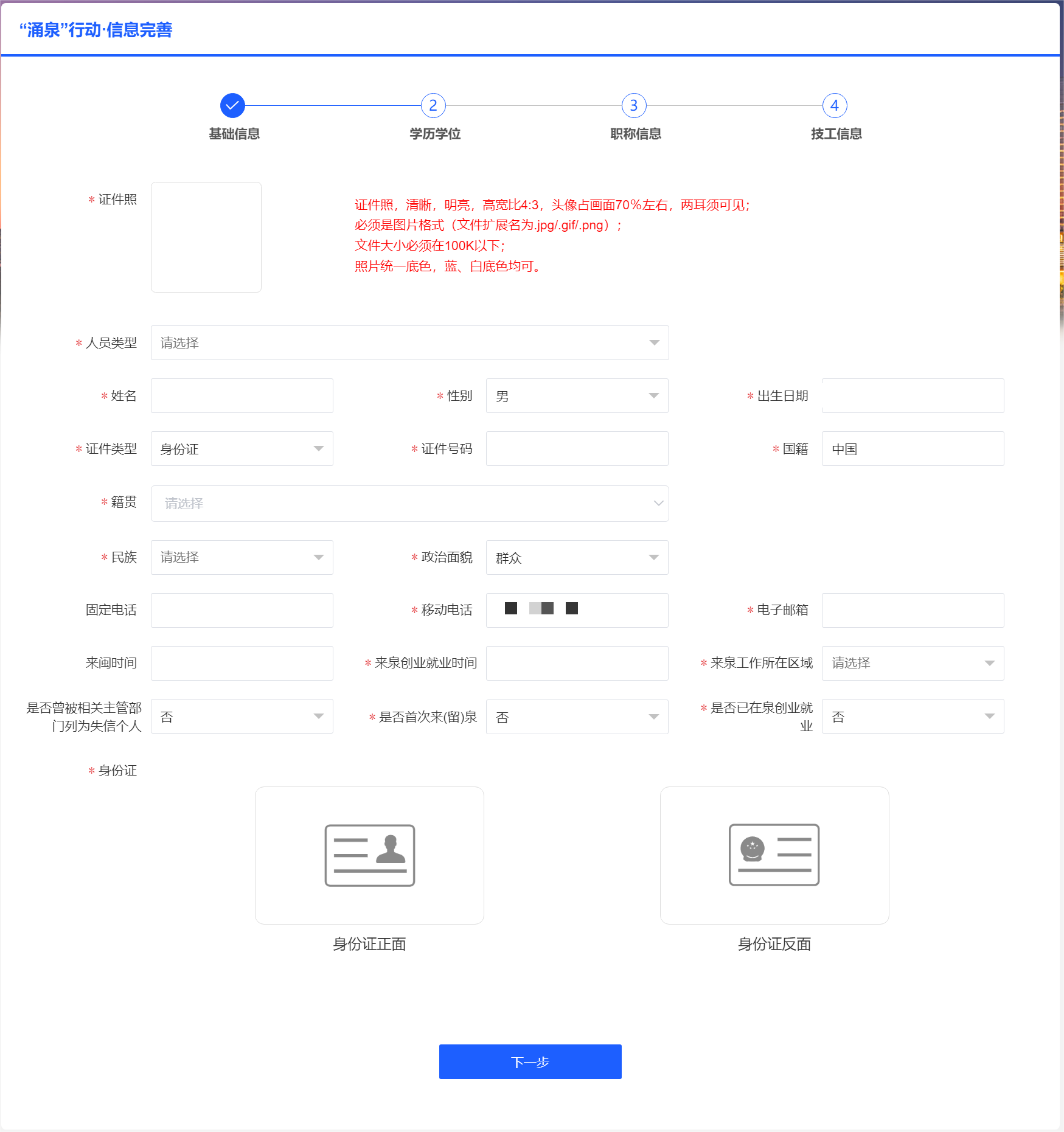5.登陸后如果未完成【信息完善】則進(jìn)入【信息完善】頁(yè)面