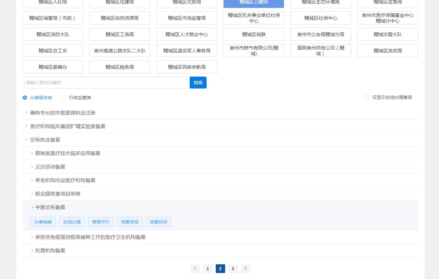 2、線上申報:登陸https://zwfw.fujian.gov.cn/選擇“鯉城區”,按“我要辦”-“部門服務”-“鯉城區衛健局”步驟查詢需辦理事項,點擊“我要申報”。