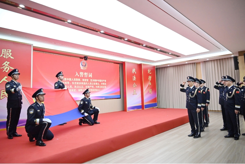 “我是中國人民警察,我宣誓:堅(jiān)決擁護(hù)中國共產(chǎn)黨的絕對領(lǐng)導(dǎo),矢志獻(xiàn)身崇高的人民公安事業(yè)……”現(xiàn)場,全體民警警容嚴(yán)整、精神飽滿,在領(lǐng)誓人的帶領(lǐng)下高舉右拳,重溫入警誓詞,誓詞鏗鏘有力,句句擲地有聲,再次宣示了對公安事業(yè)的忠誠與熱愛。