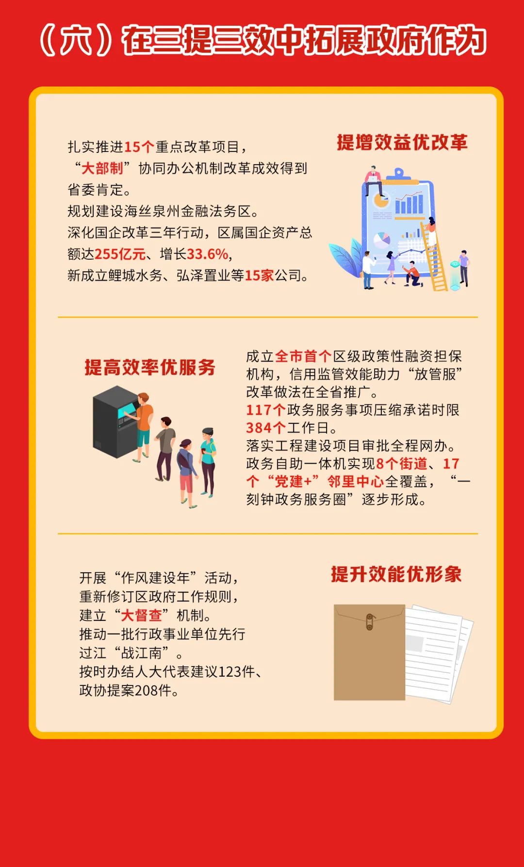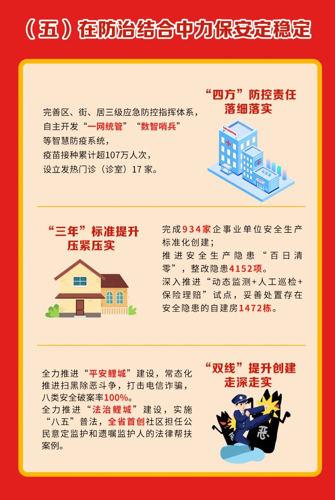 提升財政保障能力和預算管理水平,完善國企投融資監管機制。常態化開展掃黑除惡斗爭,持續打擊電信詐騙和養老詐騙。進一步深化黨建引領基層網格管理服務。優化打造82個“提高型”智慧安防小區。