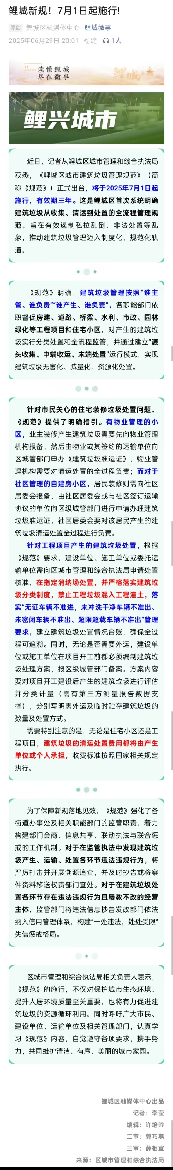 【媒體解讀/二次傳播】《鯉城區城市建筑垃圾管理規范》政策解讀