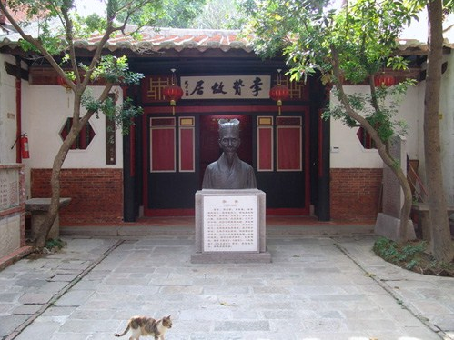 李贄故居位于泉州鯉城區南門萬壽路123號,為一座兩進三開間的普通民房,現前落只剩一間通道,正廳建筑形式為坡屋頂,磚木結構,廳堂內案桌供脫胎李贄塑像,后有李贄家族族系圖。廳口聯文為“聯濟南隴西為鼎族;蔚政事文學之名賢”;廳中楹聯為“兩支雙名宦;三世四鄉賢”。正廳兩側有現任副市長周錕民題留的李贄在云南姚安知府任上所撰對聯“聽政有悠閑,不妨甓運陶齋,花栽潘縣;做官無別物,只此一庭明月,兩袖清風。”清同治間(1862-1874)修葺時,在該廳右側出土有李贄石質印章兩枚,一刻陰文“李贄”,一刻陽文“卓吾”。現分別收藏于中國歷史博物館和泉州海外交通史博物館,此次辟李贄紀念館專門復制陳列,泉州師院歷史系教授吳幼雄捐出收藏的李贄祖母墓志銘也陳列于此。經鯉城區本屆政府的關心重視,重新整葺的故居辟為李贄紀念館,并請全省知名雕塑家楊振榮雕塑了李贄半身銅像一尊,并刻有李贄生平簡歷,供游客贍仰。故居占地面積495平方米。