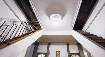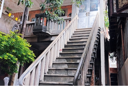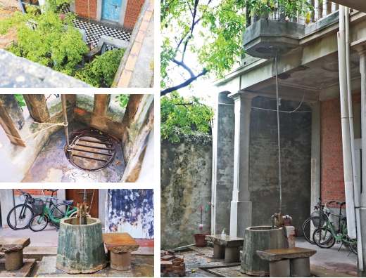 為方便居住,洋樓內外均設有樓梯,除一樓大廳樓梯可以直上二樓外,一樓大門西側還有一座石梯通往二樓,石質扶手和階梯的線條簡約大方,賞心悅目。二樓兩側外廊各有一處向樓外凸出的小陽臺,大門東側小陽臺有一圓孔,從上往下看,正好對應一樓院中的一口水井,當年葉家人在二樓即可直接從陽臺吊水上樓,免去了拎水爬梯之苦,可見主人思慮周全。