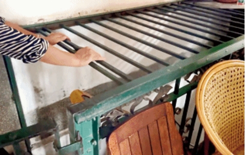 葉氏兄弟還頗費巧思,在洋樓里布設了不少“機關”,各種防盜設施齊全。例如,通往二樓的樓梯口,直接用鐵欄封住三面,需要二樓里的人拉伸置于軌道上的鐵欄,方可進入,鐵欄的構件都是當年手工鍛造而成,至今仍異常牢固;二樓前廳后門左右門扇叫作“陰陽門”,左邊凸起,右邊凹進,合攏之后,互相卡嵌,無法用刀從外面撥開門栓;門栓同樣暗藏機關,栓上容易,拉開會被卡住,要在屋內按一下門栓小機關才可方便拉開,門扇和門栓的“雙保險”,令人非常有安全感。
