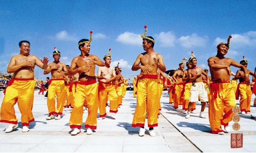 拍胸舞“拍胸舞”又稱“拍胸”、“打七響”、“打花綽”等,是福建省最有代表性的民間舞蹈之一,主要流行于閩南地區(qū)的浮橋、江南一帶及泉州、金門等地。尤其在泉州地區(qū),大到政府舉辦的各種重大文化活動、大型文藝踩街,小到各單位的集會慶典、鄉(xiāng)村民間的迎神賽會,以至普通百姓家的婚喪喜慶,隨處可見“拍胸舞”身影。拍胸舞成為泉州乃至閩南地區(qū)最具代表性的一種民間舞蹈。拍胸舞形式比較簡單,僅一二人便可隨時隨地隨意起舞。泉州拍胸舞是泉州地區(qū)原住民閩越族舞蹈的歷史遺跡,是閩越人蛇圖騰崇拜的一種歷史見證,是具有特殊歷史文化價值的閩南民間舞蹈活化石,被國外稱為“東方迪斯科”。