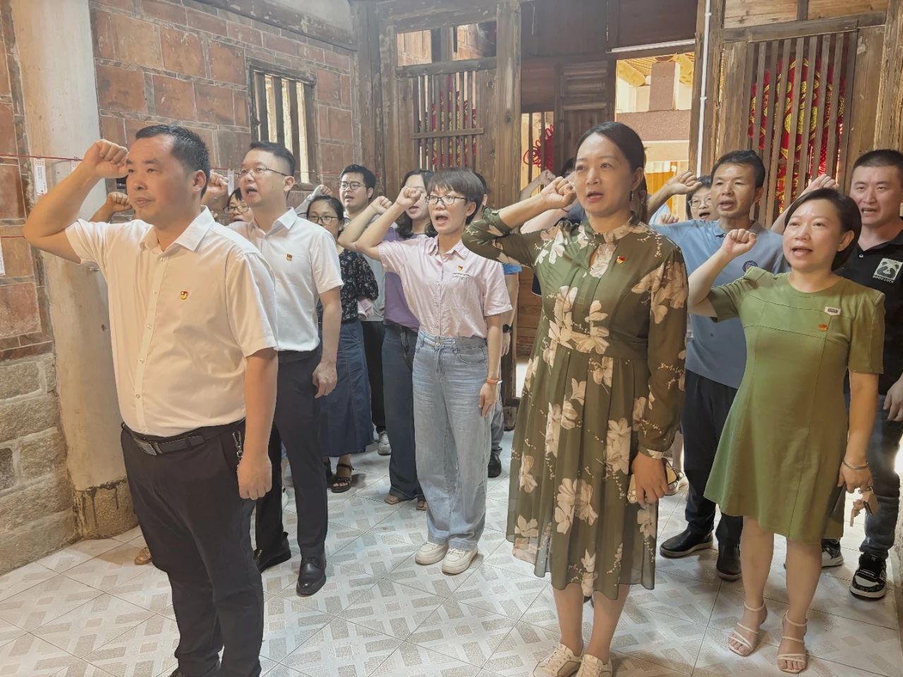 在宣誓墻前,全體黨員整齊肅立,面向鮮艷的中國共產黨黨旗,高舉右拳,重溫入黨誓詞。鏗鏘有力的誓言在舊址上空回蕩,這不僅是對入黨初心的回望,更是對新時代黨員使命擔當的鄭重承諾。每一位黨員都用發自內心的聲音抒發對黨忠誠的決心,表達為黨的事業奮斗終身的堅定信念。