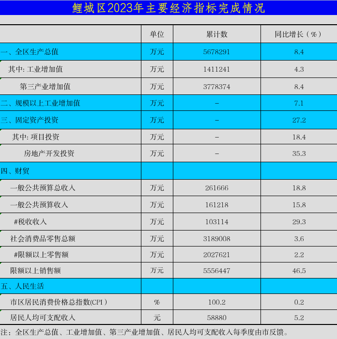 鯉城區2023年1-4季度主要經濟指標完成情況