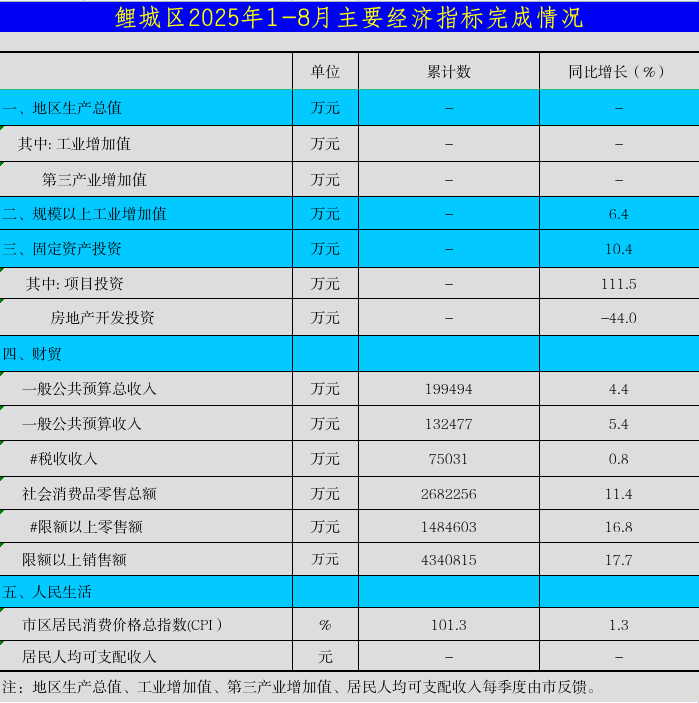 鯉城區2025年1-8月主要經濟指標完成情況